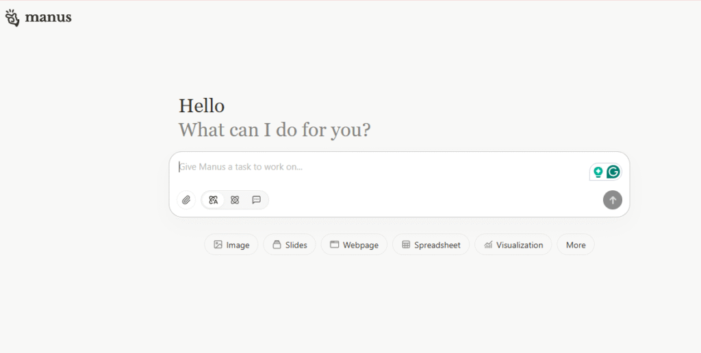 - Start using Manus AI: After your account creation, it will redirect you to the next page, where you will see an input box. In that box, you need to enter a topic, question, or instruction that you want Manus AI to work on.
